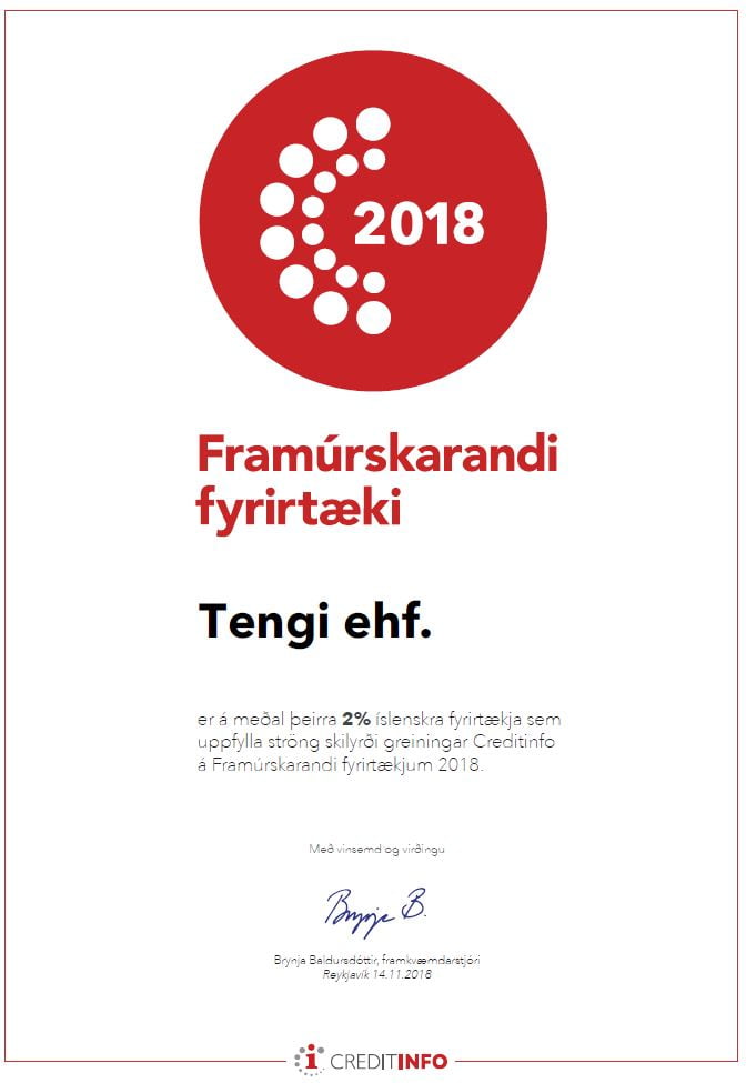 Tengi er á meðal 2,0% íslenskra fyrirtækja sem uppfylla skilyrði Creditinfo um Framúrskarandi fyrirtæki 2018.