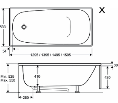 Caribia baðkar frá Ifö 160×70 cm.