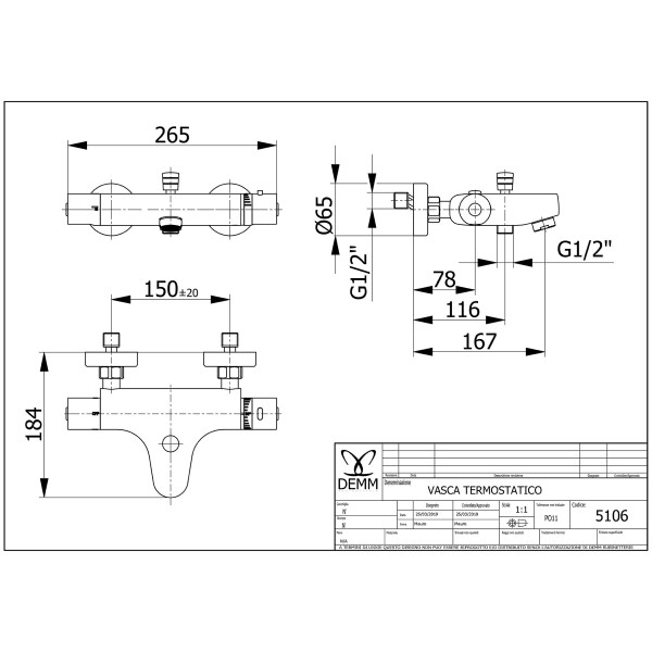 Demm Hitastýrt baðtæki m.handsturtu Matt Svart