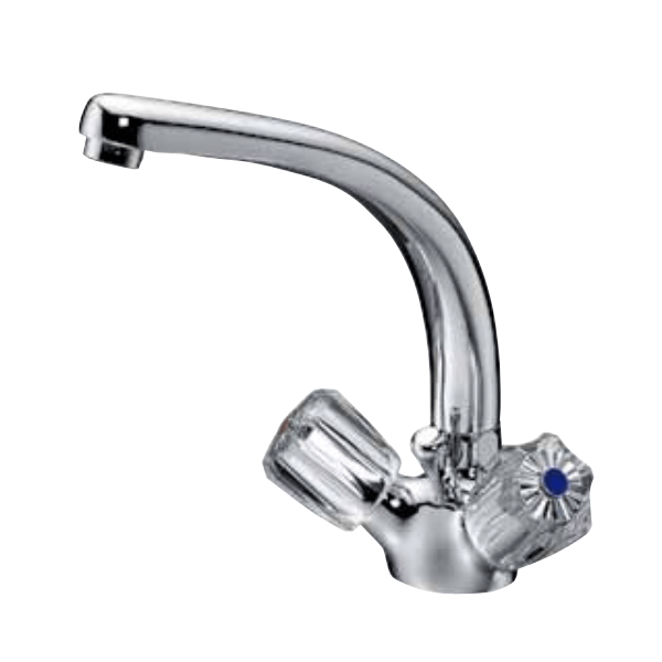 Tveggjahanda handlaugartæki með hárri sveiflu. Tækið kemur með lyftitappa setti.