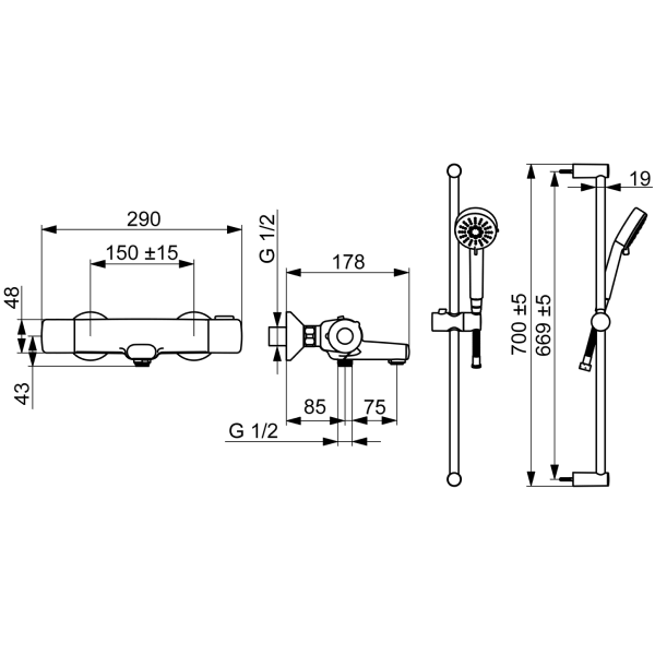 HANSABASIC HITAST. BAÐ OG STURTU BLÖNDUNARTÆKI