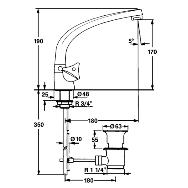Tveggjahanda handlaugartæki með hárri sveiflu. Tækið kemur með lyftitappa setti.