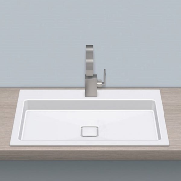 Glæsileg hvít ferkanta handlaug niðurfelld borð frá Alape.