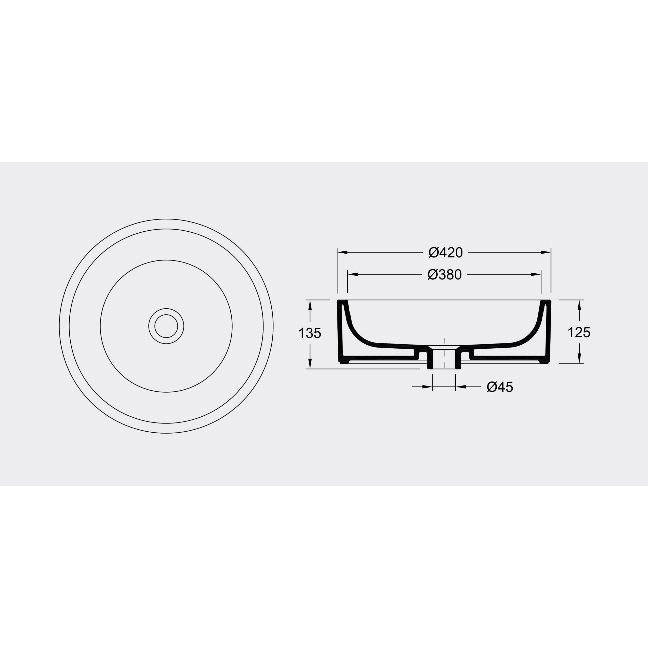 Malibu handlaug ofaná borð kringlótt 42cm, hvít
