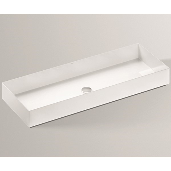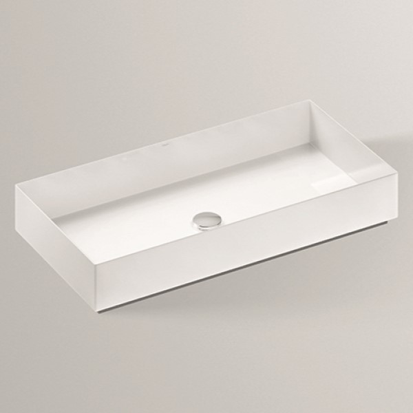 Glæsileg hvít handlaug ofaná borð frá Alape.