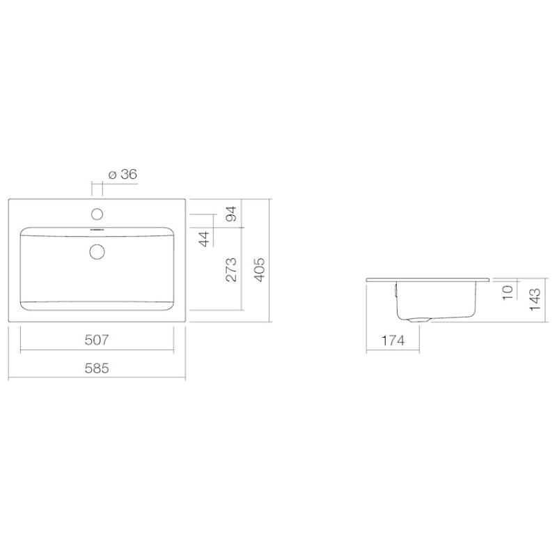 Glæsileg hvít ferkanta handlaug niðurfelld borð frá Alape.