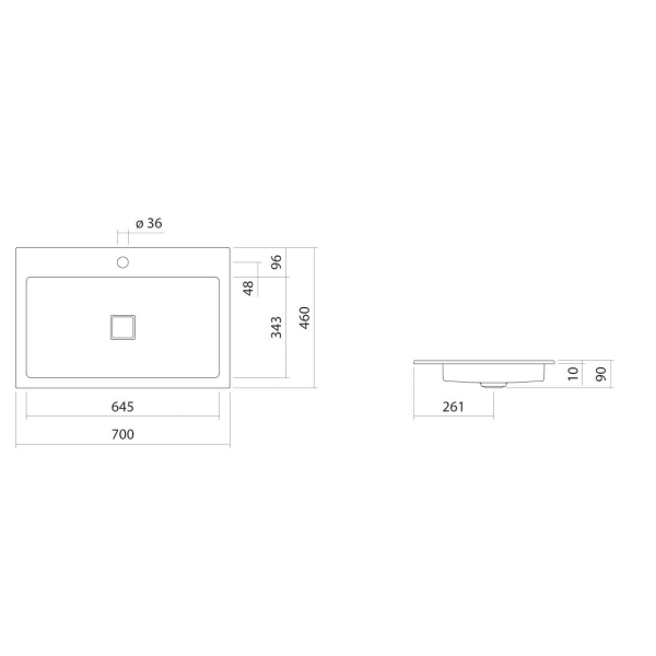 Glæsileg hvít ferkanta handlaug niðurfelld borð frá Alape.