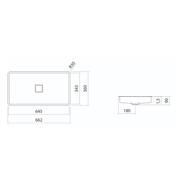 Glæsileg ferkanta undirlímd handlaug frá Alape.