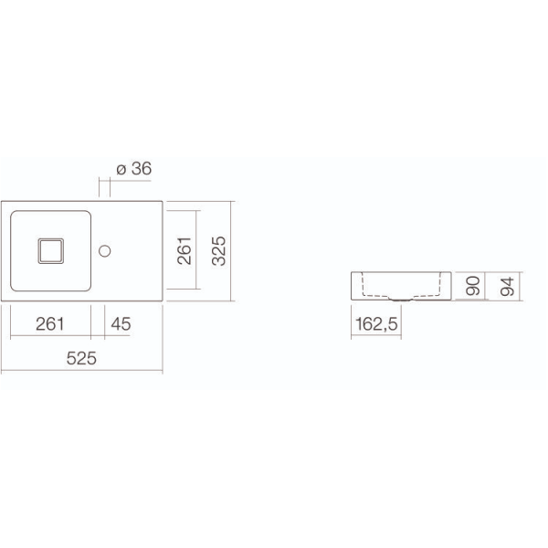 Glæsileg hvít ferkanta handlaug vegghengd frá Alape.
