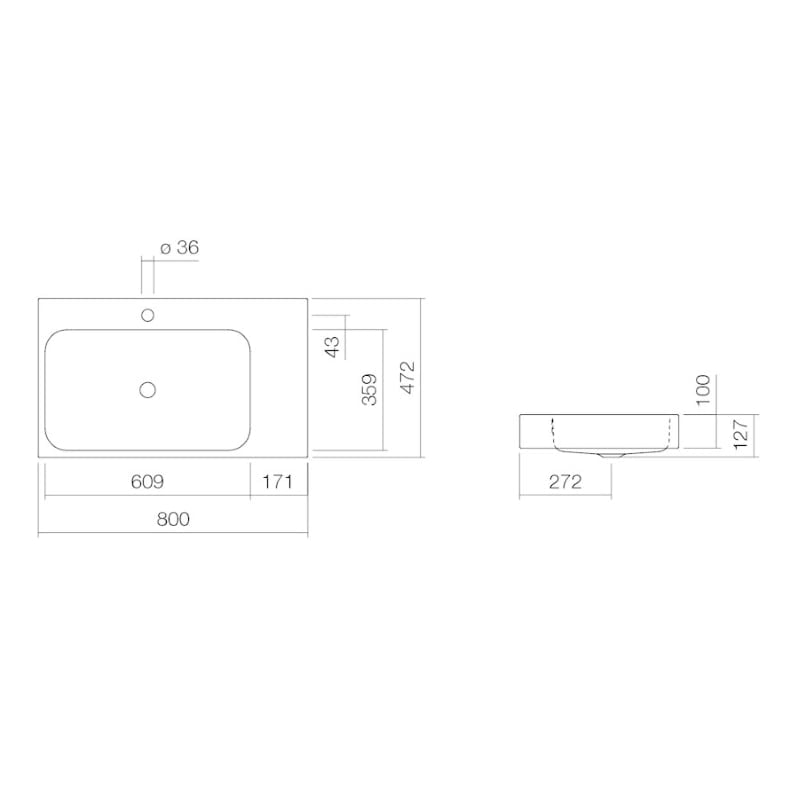Glæsileg hvít ferkanta handlaug vegghengd frá Alape.