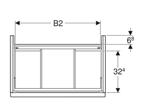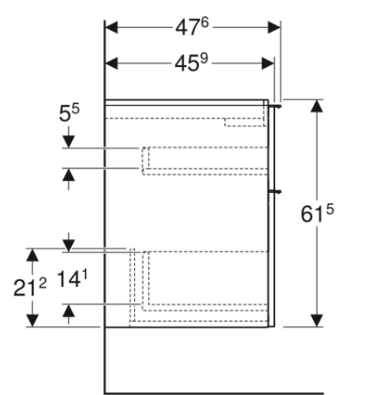 Innrétting með tveimur skúffum með soft close lokun með handfangi.