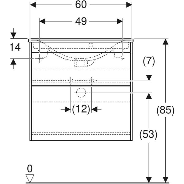 Innrétting með tveimur skúffum með soft close lokun með handfangi