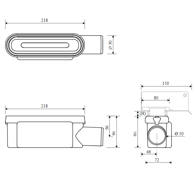 Niðurfall lárétt með vatnlás 50mm til hliðar frá Unidrain