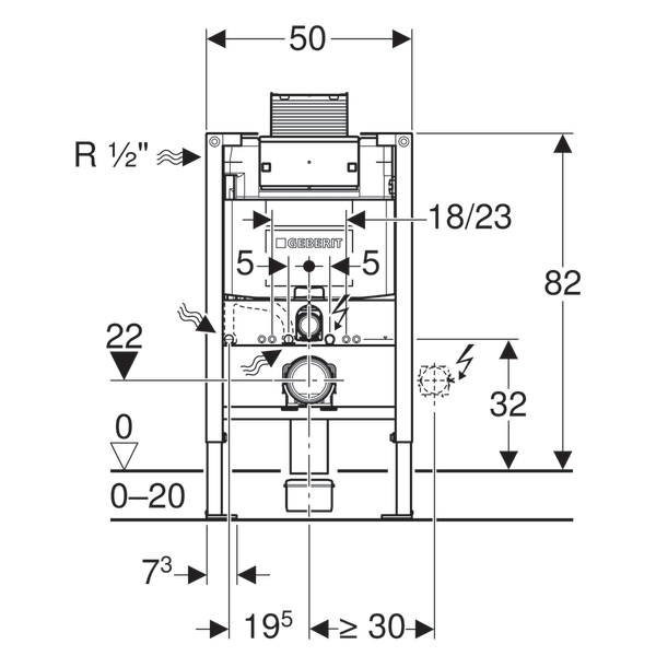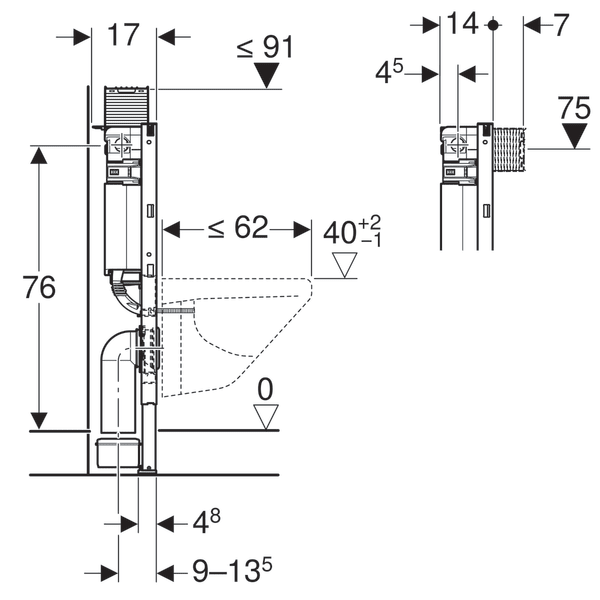 Lágmarkshæð: 820 mmBreidd: 500 mmÞykkt: 140 mm