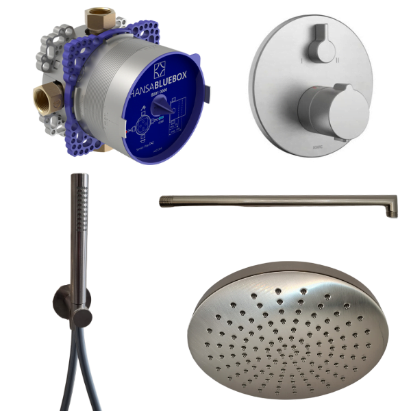 Innbyggður burstaður nikkel sturtupakki með öllu sem þarf fyrir góða sturtu