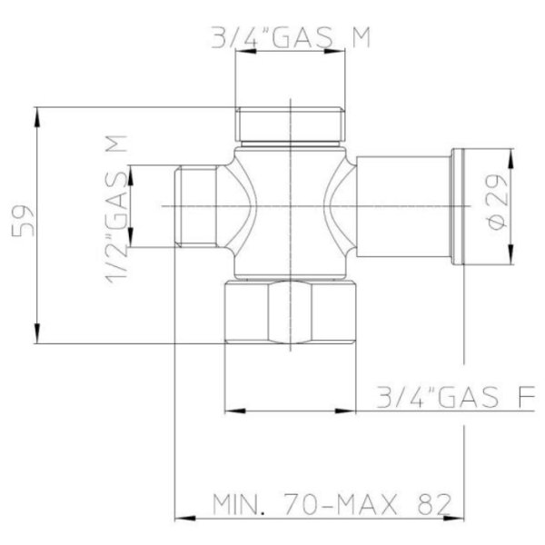 Skiptir á sturtutæki . 1/2 x 3/4 x 3/4. Frá Bossini. Úr krómi.