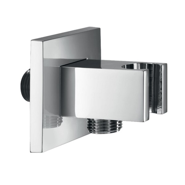 Ferkantað vegghné fyrir innbyggt tæki með festingu fyrir handsturtu, krómað.