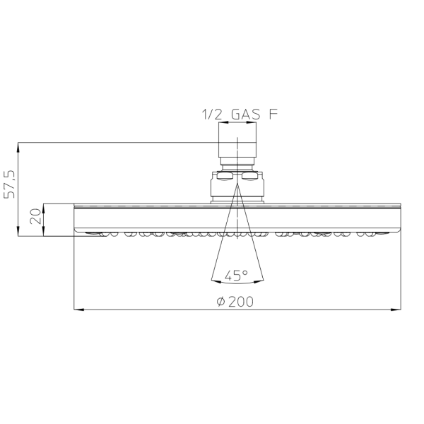 Veglegur 20cm sturtuhaus úr stáli frá ítalska framleiðandanum Bossini.