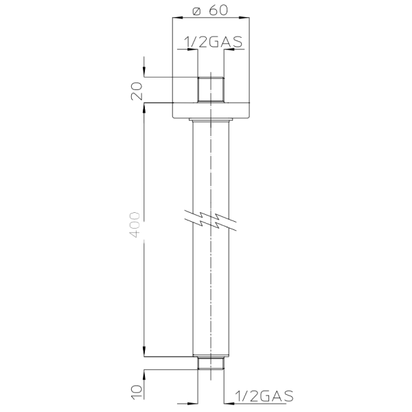 400mm rúnuð sturtustöng úr lofti frá Bossini. Úr krómi.