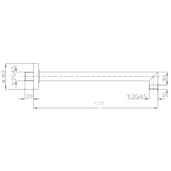 500mm rúnuð sturtustöng úr vegg frá Bossini. Úr krómi