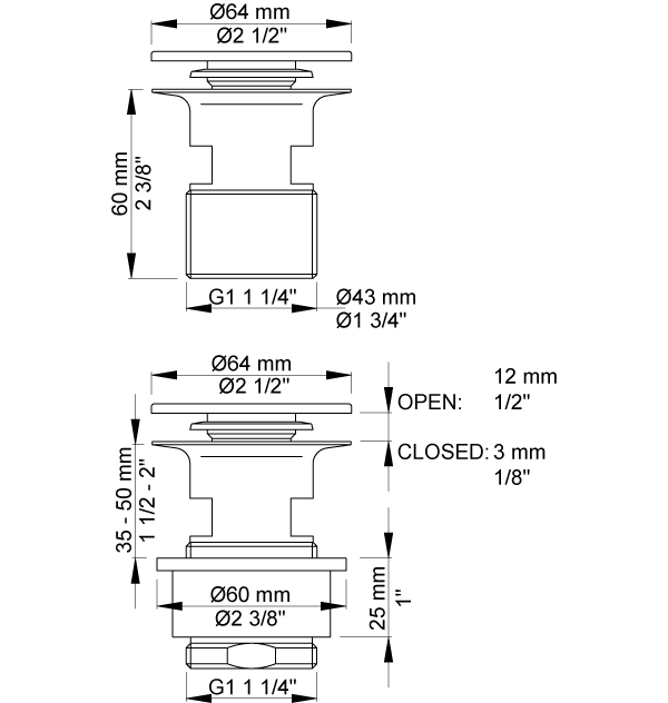 Fallegur botnventill fyrir handlaugar frá Vola