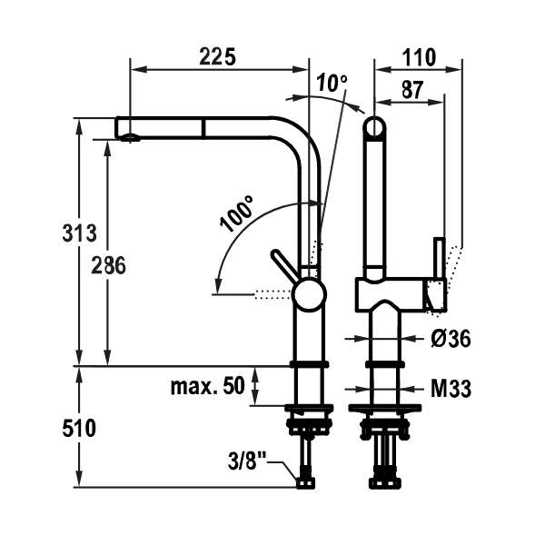 * Flexible connection hoses ⅜“