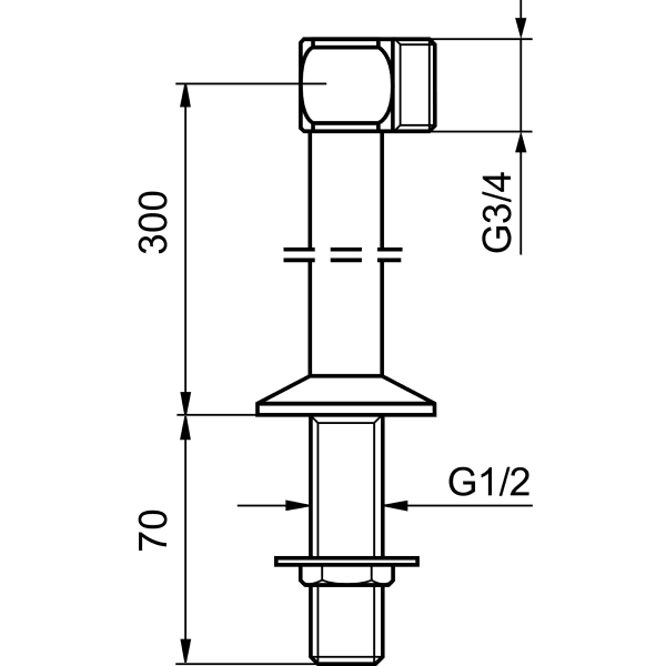 Krómað tengirör 300mm í borð 3/4″ x 1/2″